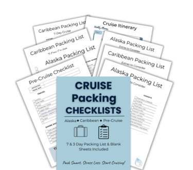 If you need help with packing and some packing ideas, check out my Free Ultimate Cruise Checklists, which includes a pre-cruise checklist, Caribbean, Alaska cruise packing lists, and more!